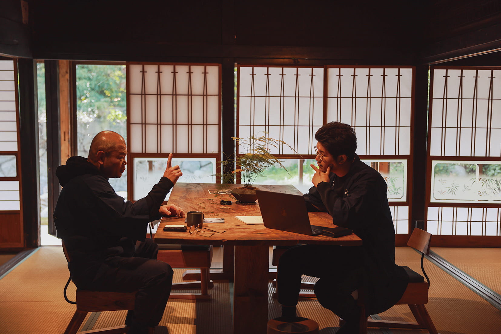 これからのものづくりや心地よい働き方、豊かな暮らしについて、代表の今井久志が対話からヒントを探る連載。第2回目のゲストは、山梨と千葉を中心に約30棟の一棟貸し文化宿を運営する株式会社LOOOFの取締役副社長・丸谷篤史さんです。「るうふ」の屋号で、日本古来の木造建築がつくる地域の景色を守り受け継ぐことを軸に置き、古民家の再生を続けています。伝統建築の未来を拓いていくという共通項のもと、どんな話が繰り広げられるのでしょうか。