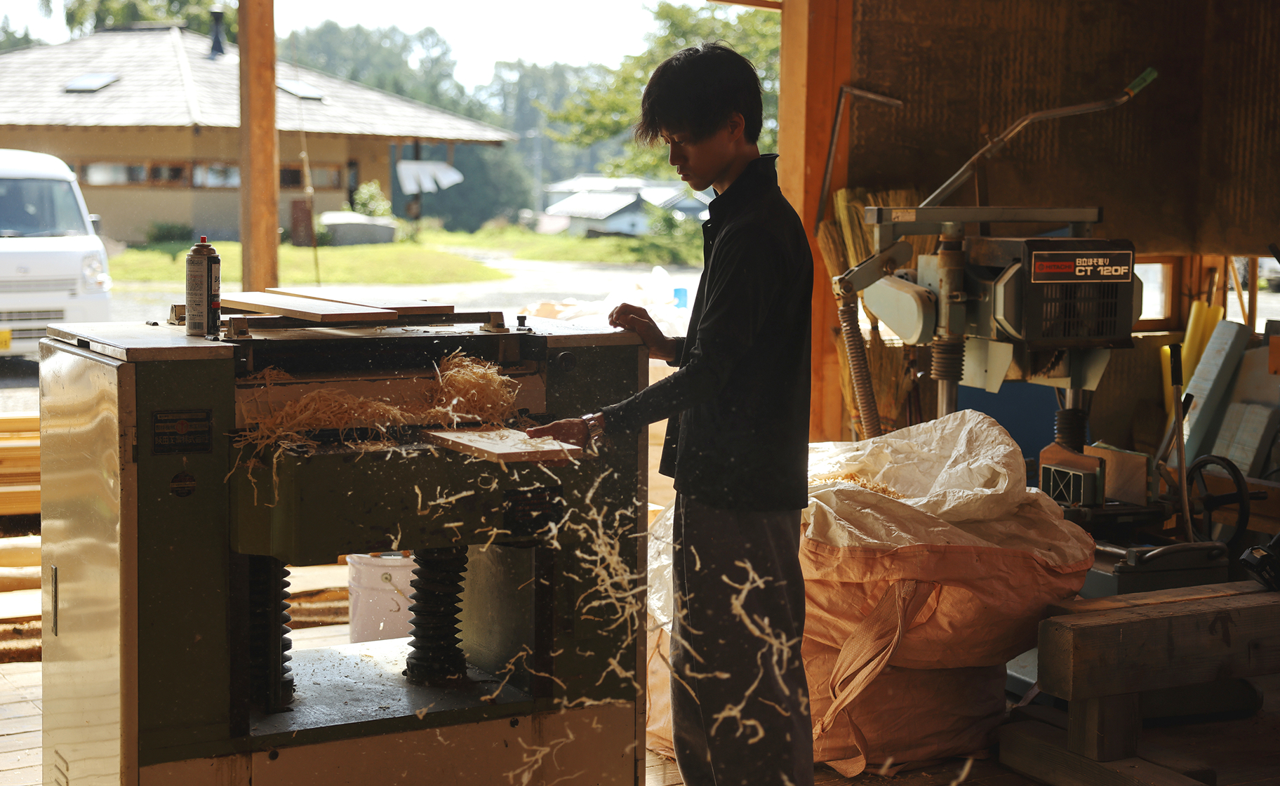 My father worked in interior finishing, applying wallpaper and flooring tiles. From an early age, I often visited construction sites and admired how cool he looked at work. I vaguely wanted to become a craftsman myself, and before joining SOBOKUYA, I worked in Tokyo assembling unit baths, from demolition to installation. However, unit baths are factory-made products that are merely assembled on site, so the work felt more like putting together a large plastic model kit than true craftsmanship. I wanted a job where I could proudly say I made a living with my own hands. That’s when I began considering either becoming a carpenter or a temple carpenter (*miyadaiku*).