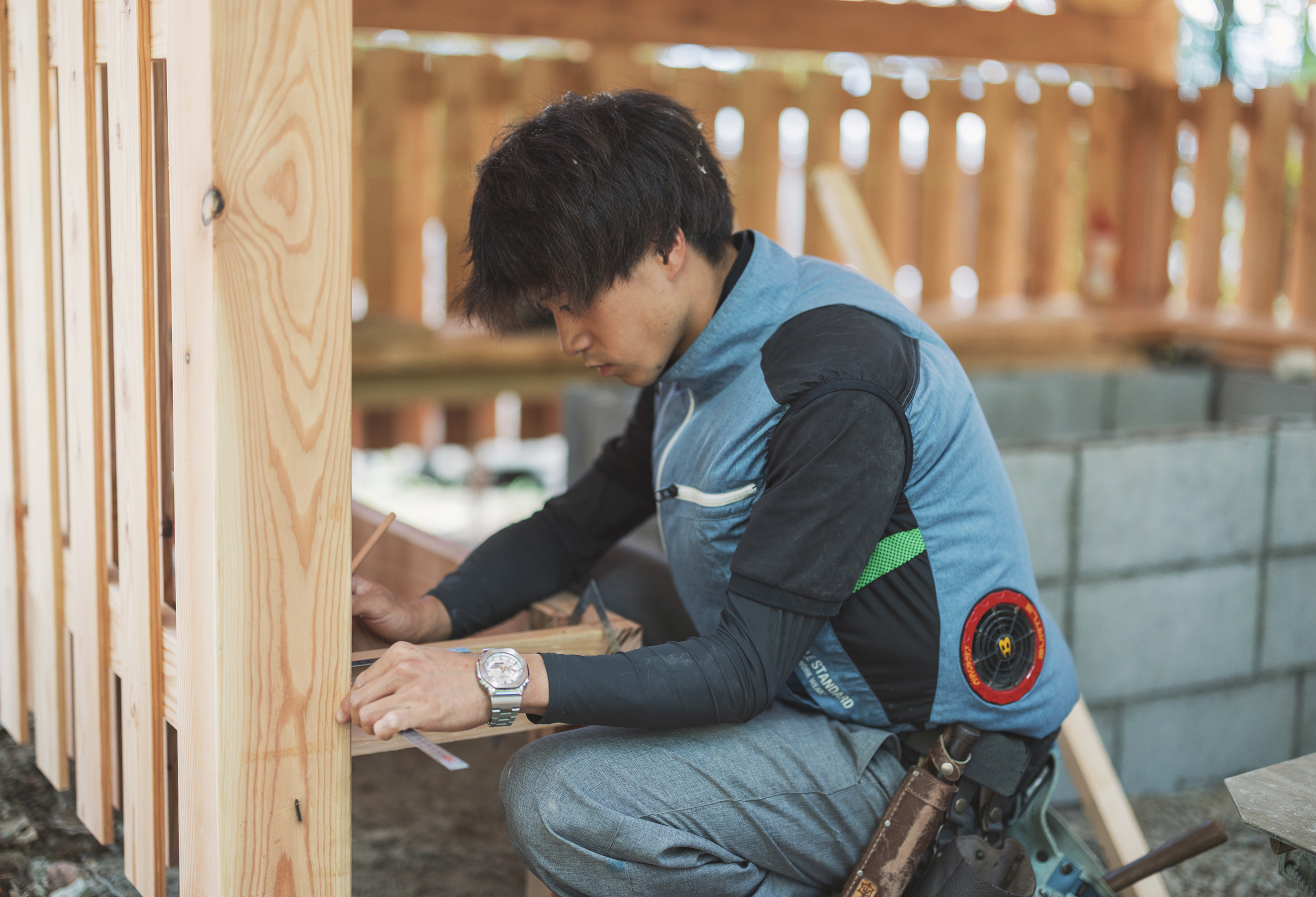 外国人の社員も多くグローバルな会社で、日本人も含めていい意味でバックグラウンドが豊かで面白い人たちが多いところです。仕事の面でも、やりたいと手を挙げればチャンスを与えてくれる会社で、やりたいことを言いやすい環境であることもいい部分だと思っています。今後は、大工としてやるからには棟梁を目指したいです。図面を見て完成をイメージできるレベルにならなければいけませんが、僕は数字が苦手で苦労しています。先輩たちから学び続けて、新築一戸建てを自分の手で形にすることが今の目標です。