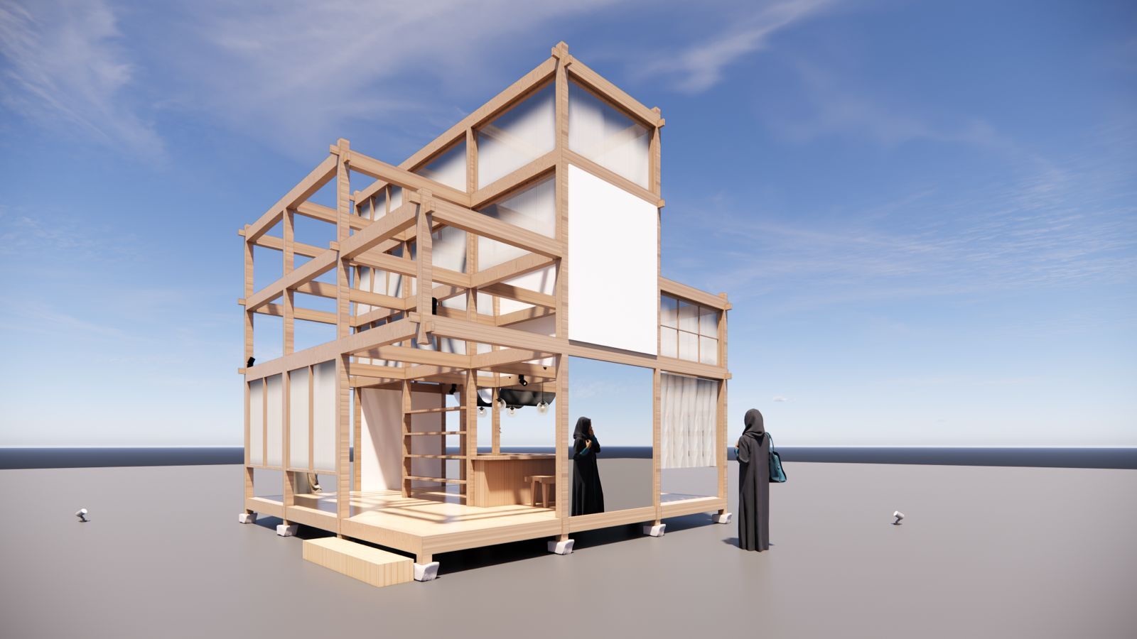 Starting from a full-scale mockup in Japan, SOBOKUYA’s craftsmen meticulously hand-carved each joint and connection using traditional techniques. After completion, the structure was shipped to Dubai, where the same carpenters traveled to reassemble and construct the installation on-site.