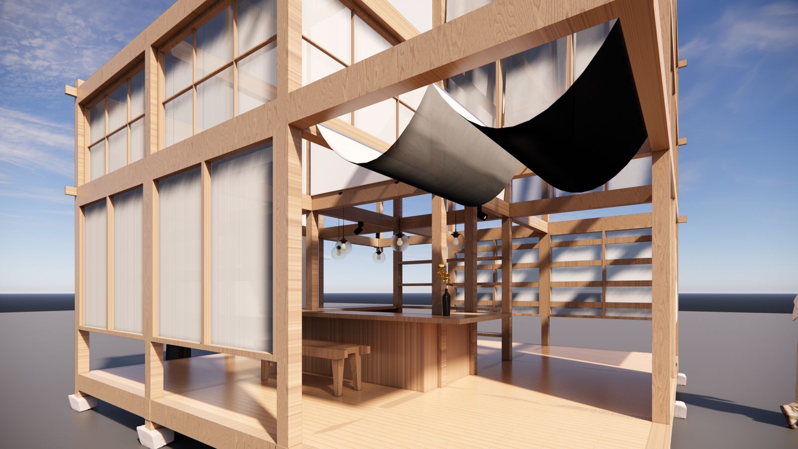 “Chatai” reinterprets Japanese tradition in a contemporary and poetic way — a gathering place that blends the tranquility of the tea room with the vibrancy of the street stall. Designed as a space where people can connect, converse, and reflect, it expresses the essence of Japanese aesthetics through a light yet profoundly cultural atmosphere.