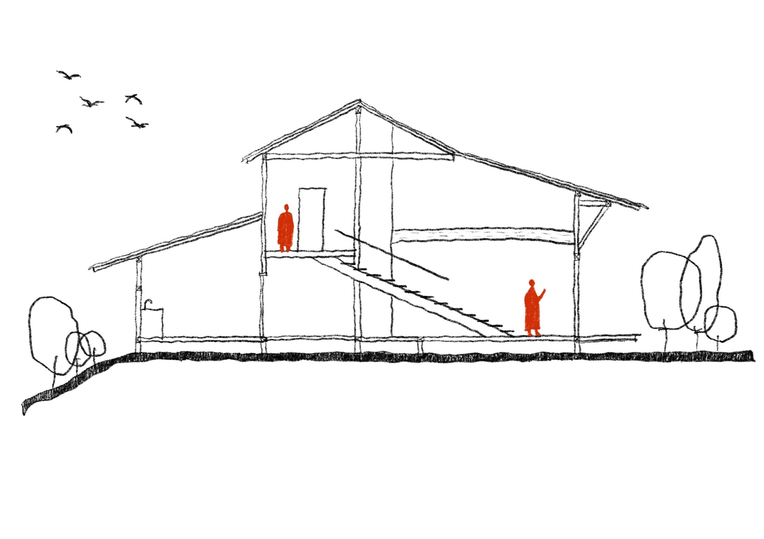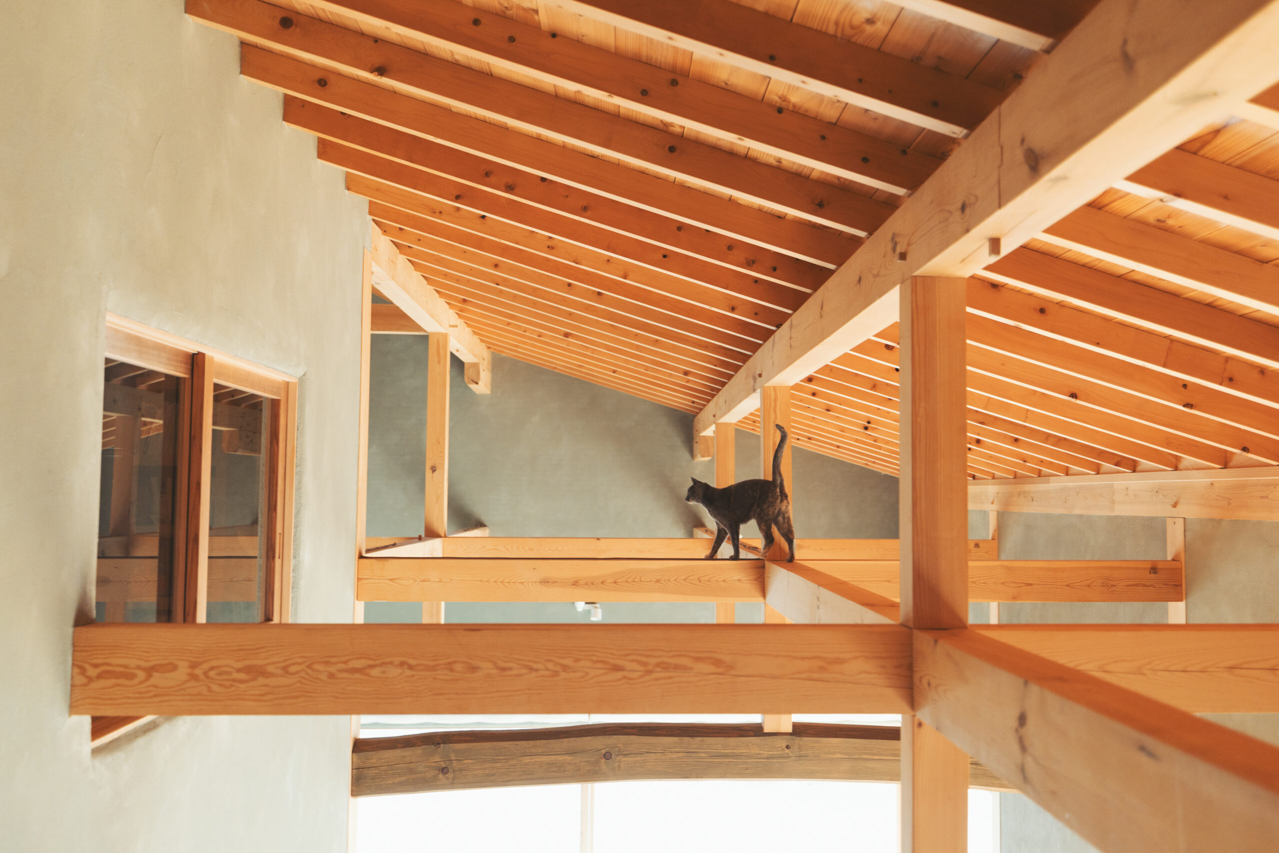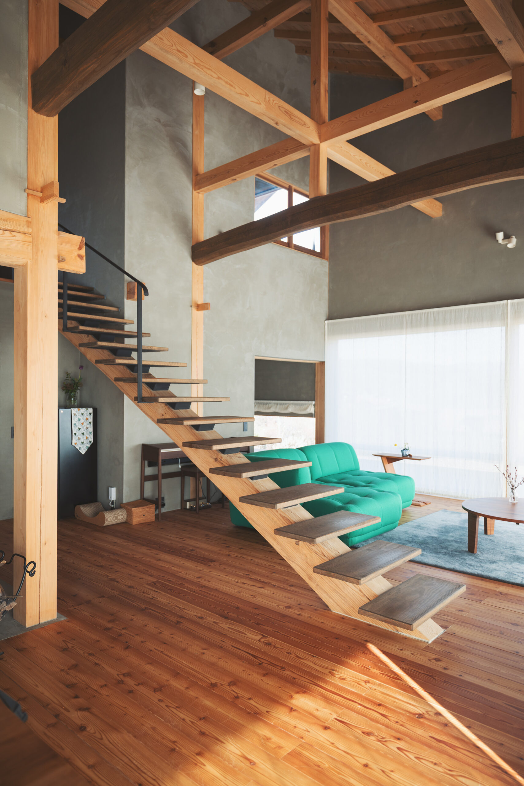曲線を描く太鼓梁の階段、丁寧に施された造作のひとつひとつに、