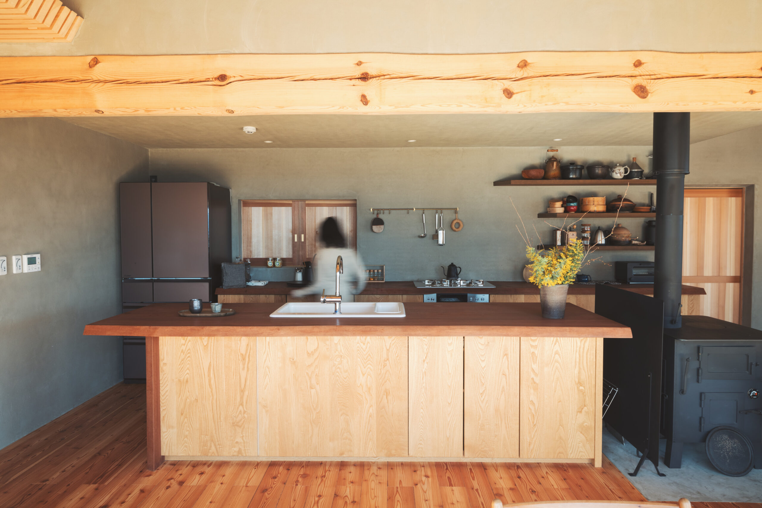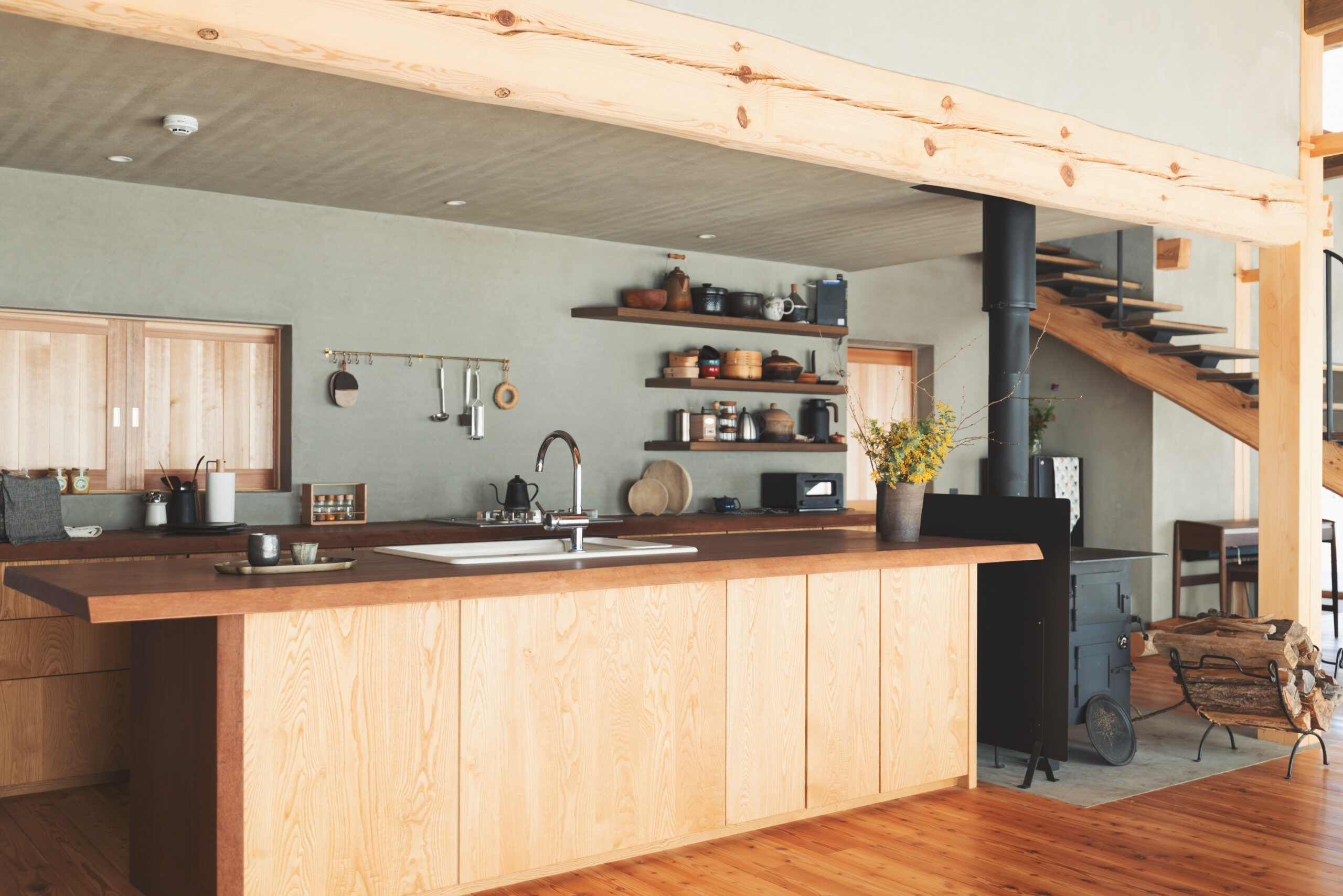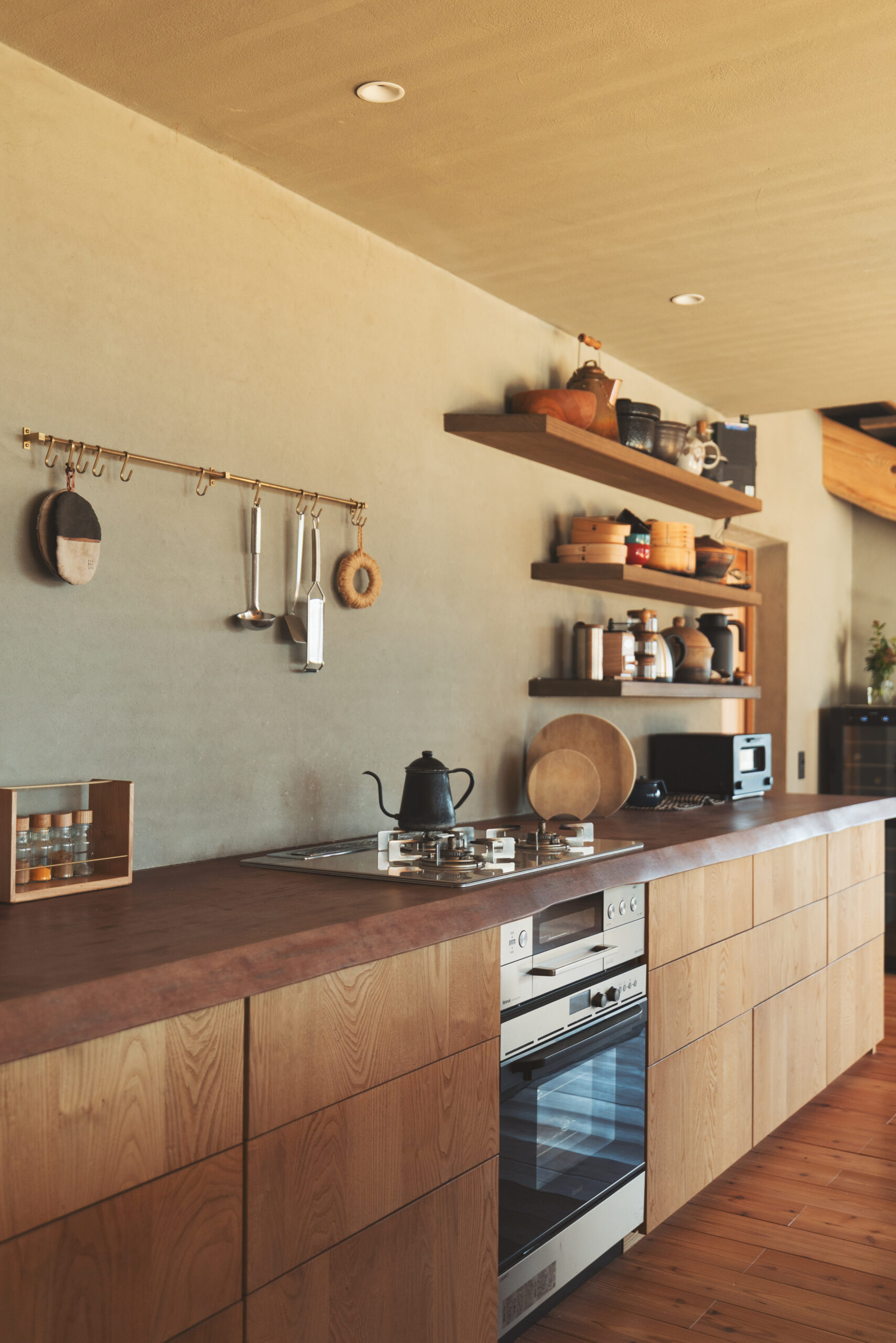 キッチンには、耐水性に優れたアフリカ産のモアビ材を。
