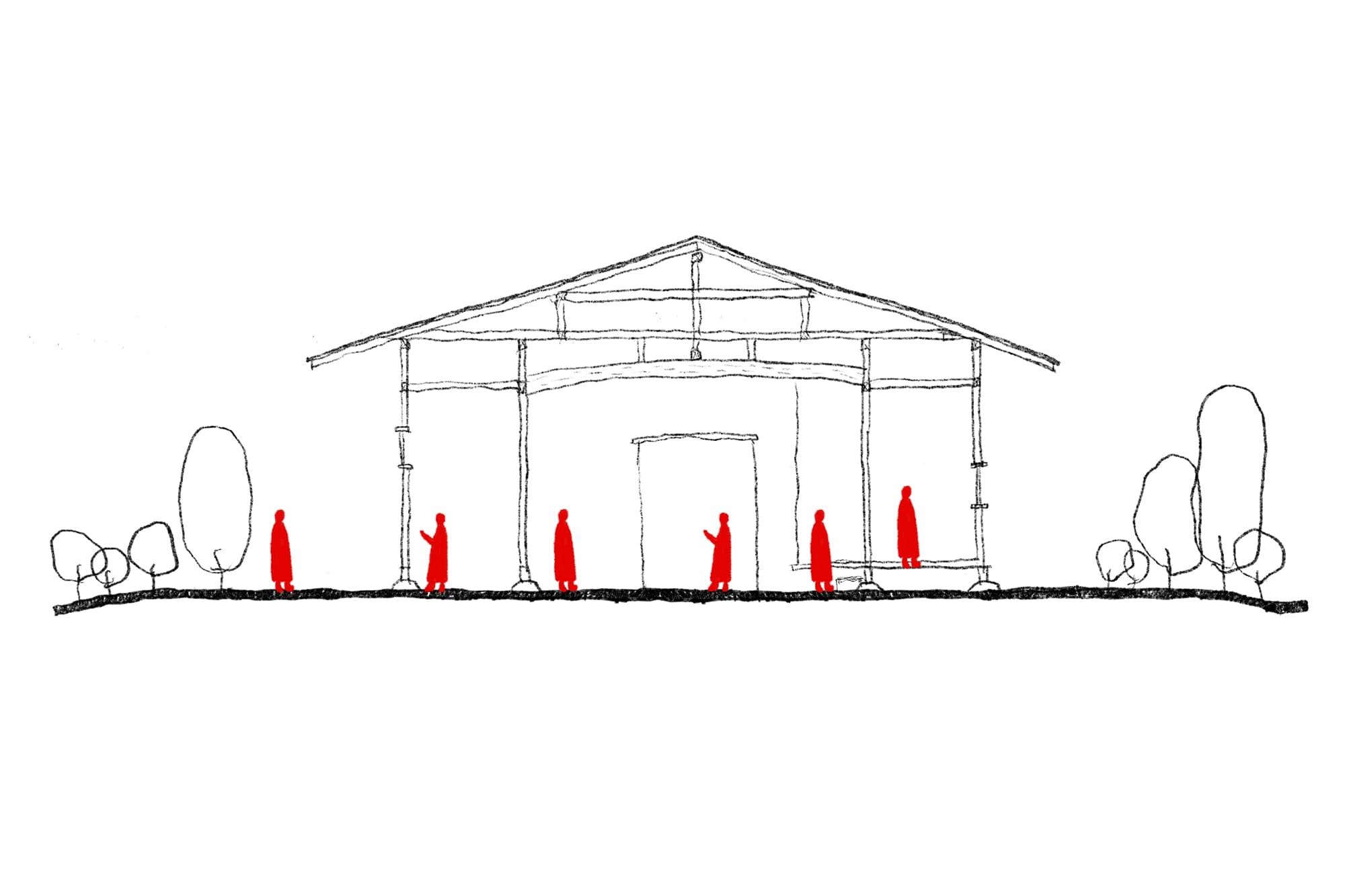 Inside, a quiet compost toilet rests.