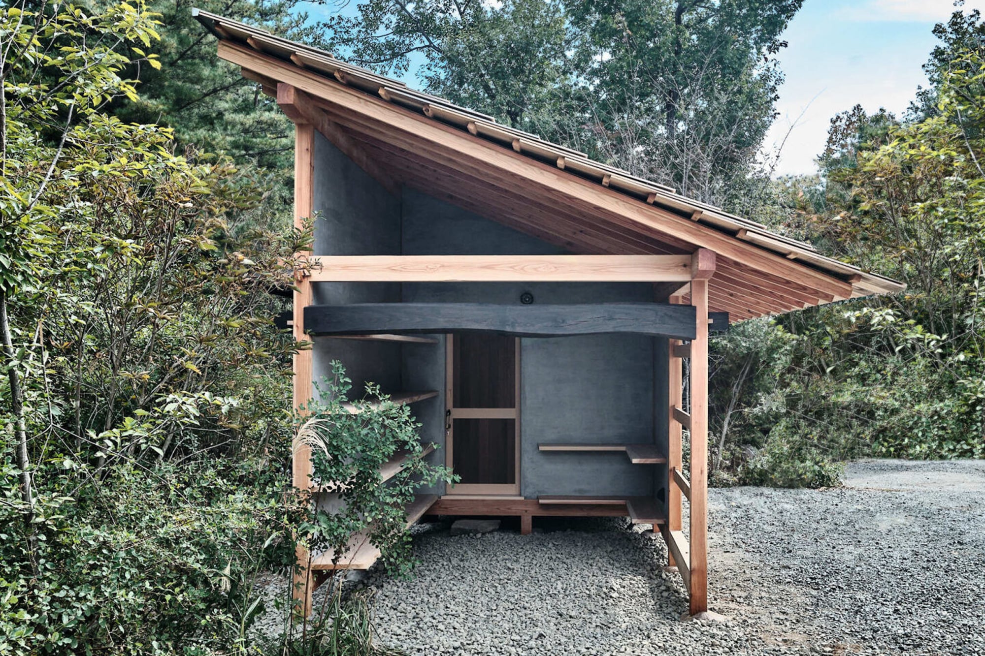The walls are finished in mortar, the roof in KOKERABUKI shingles,