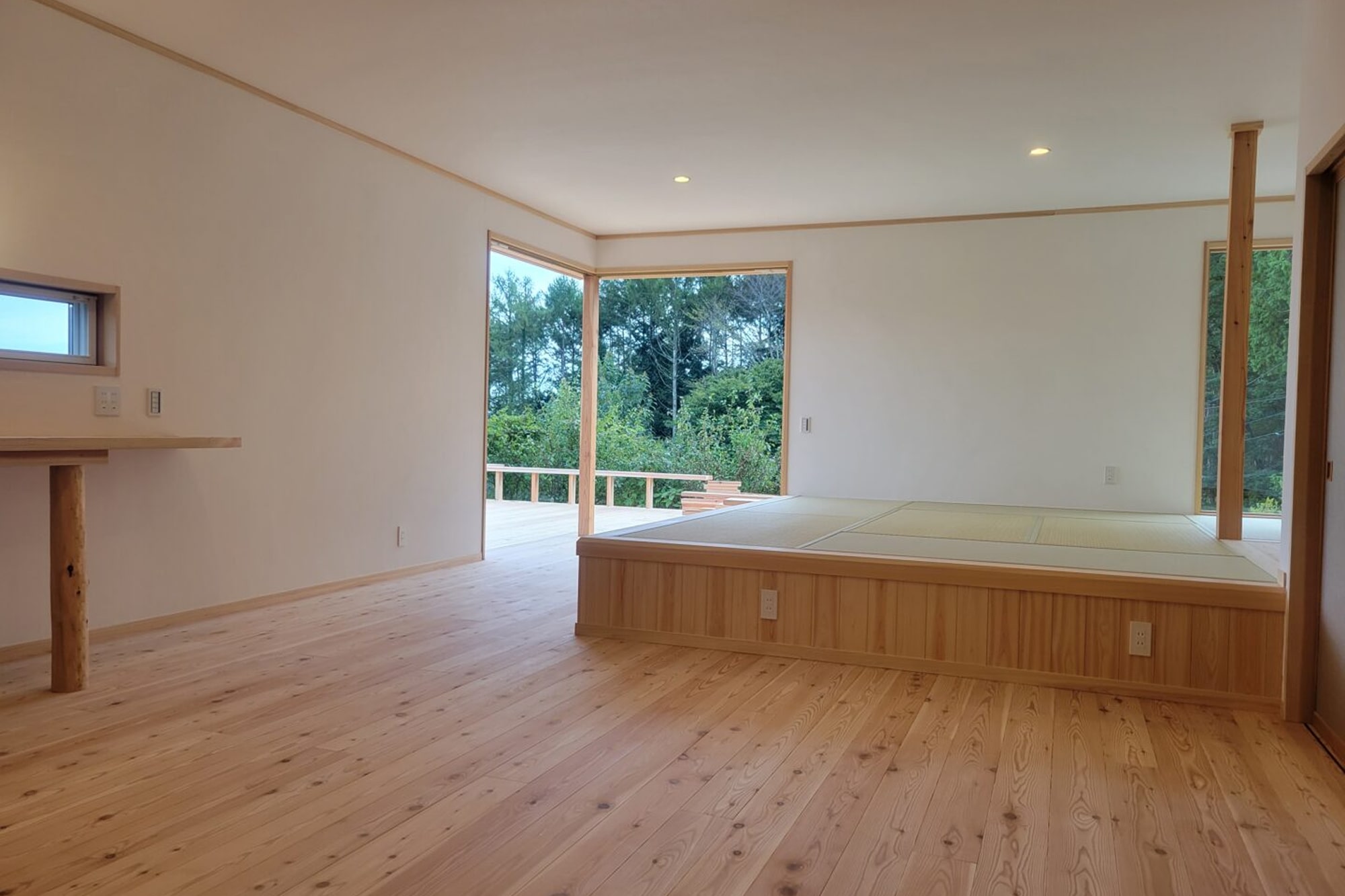 全開放型の木製引戸が、自然との一体感をもたらします。