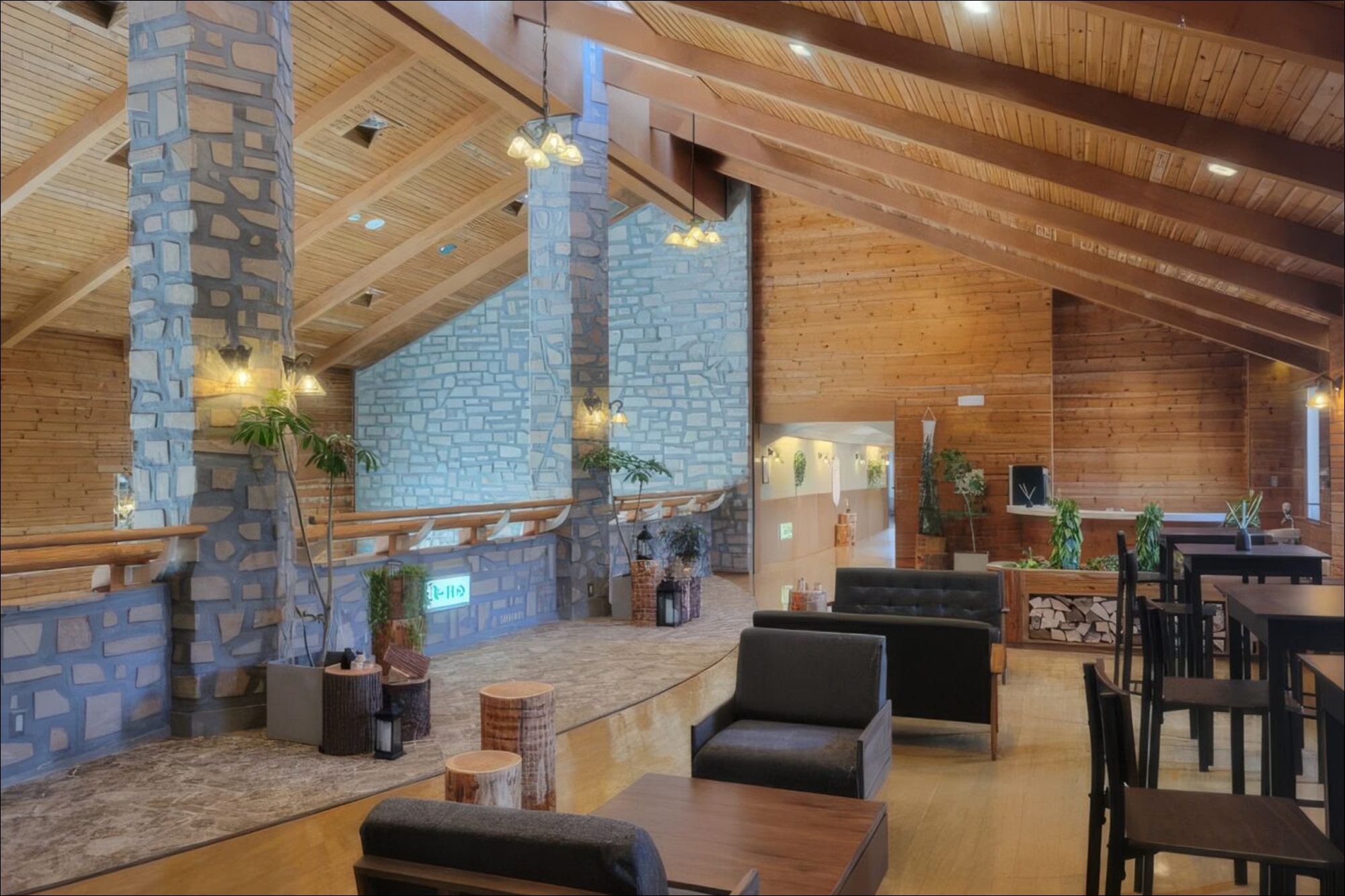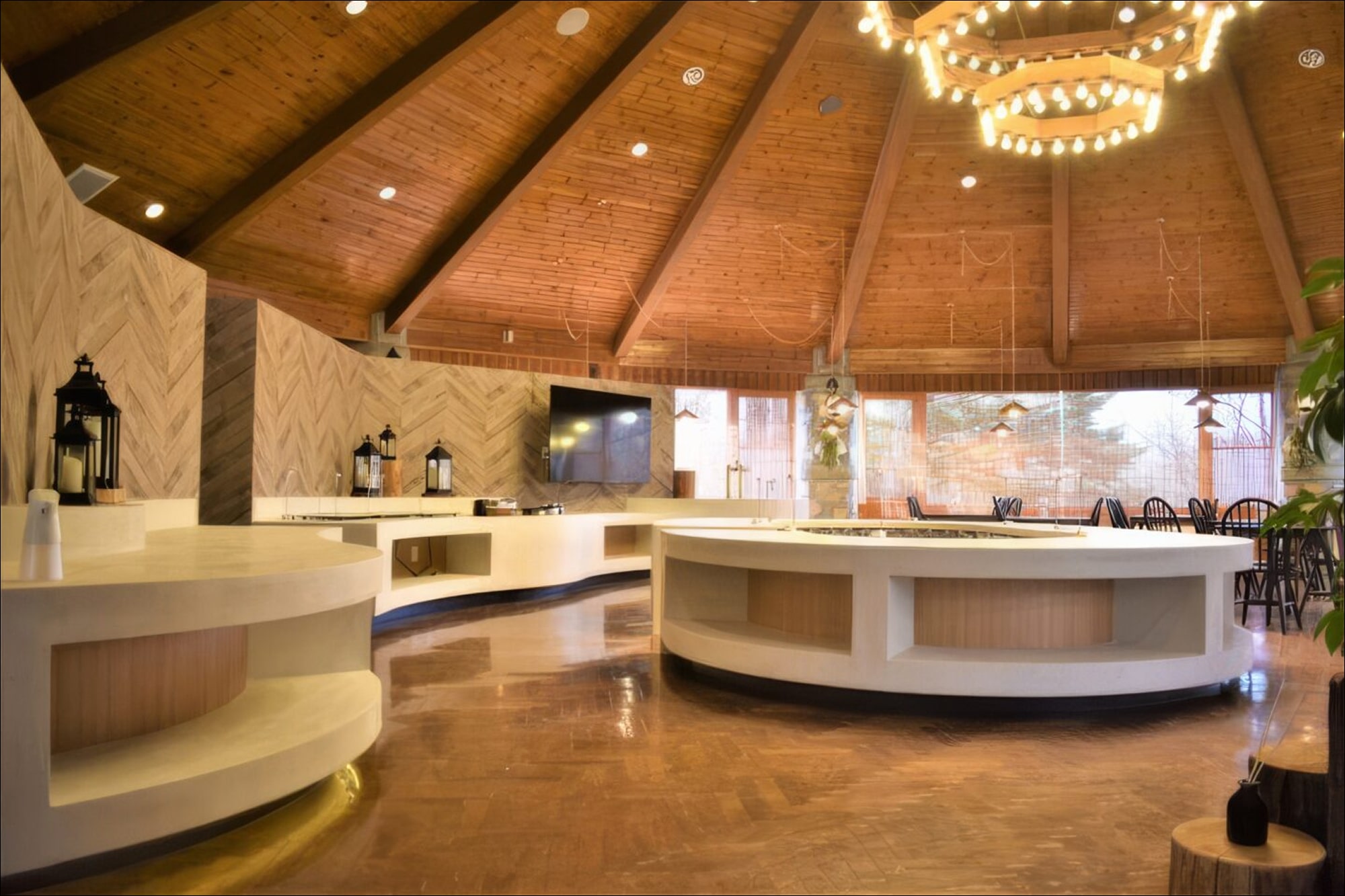 私たちは、16室の宿泊棟とレストランのビュッフェエリアの