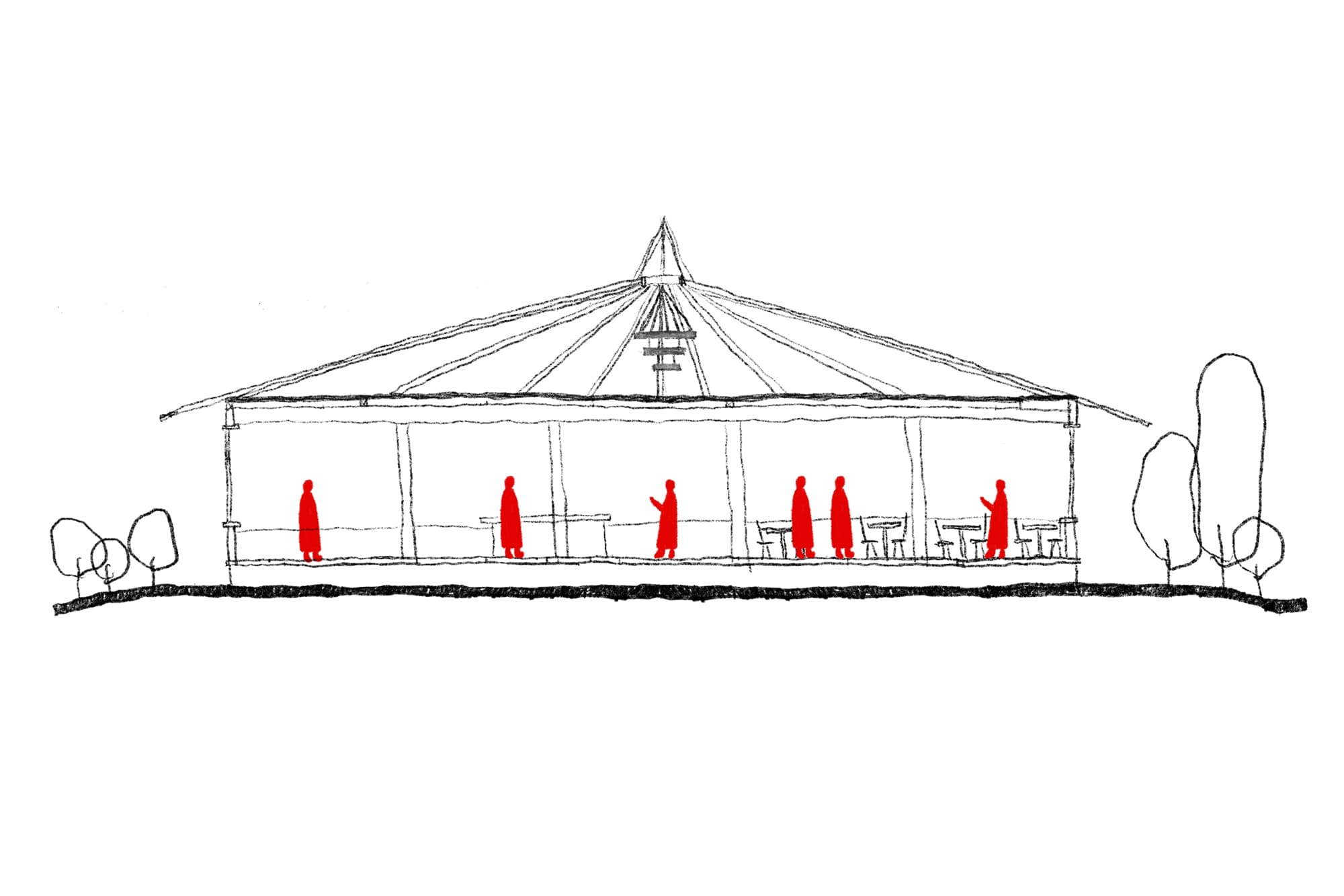 Honoring the harmony between the existing architecture and the surrounding forest,